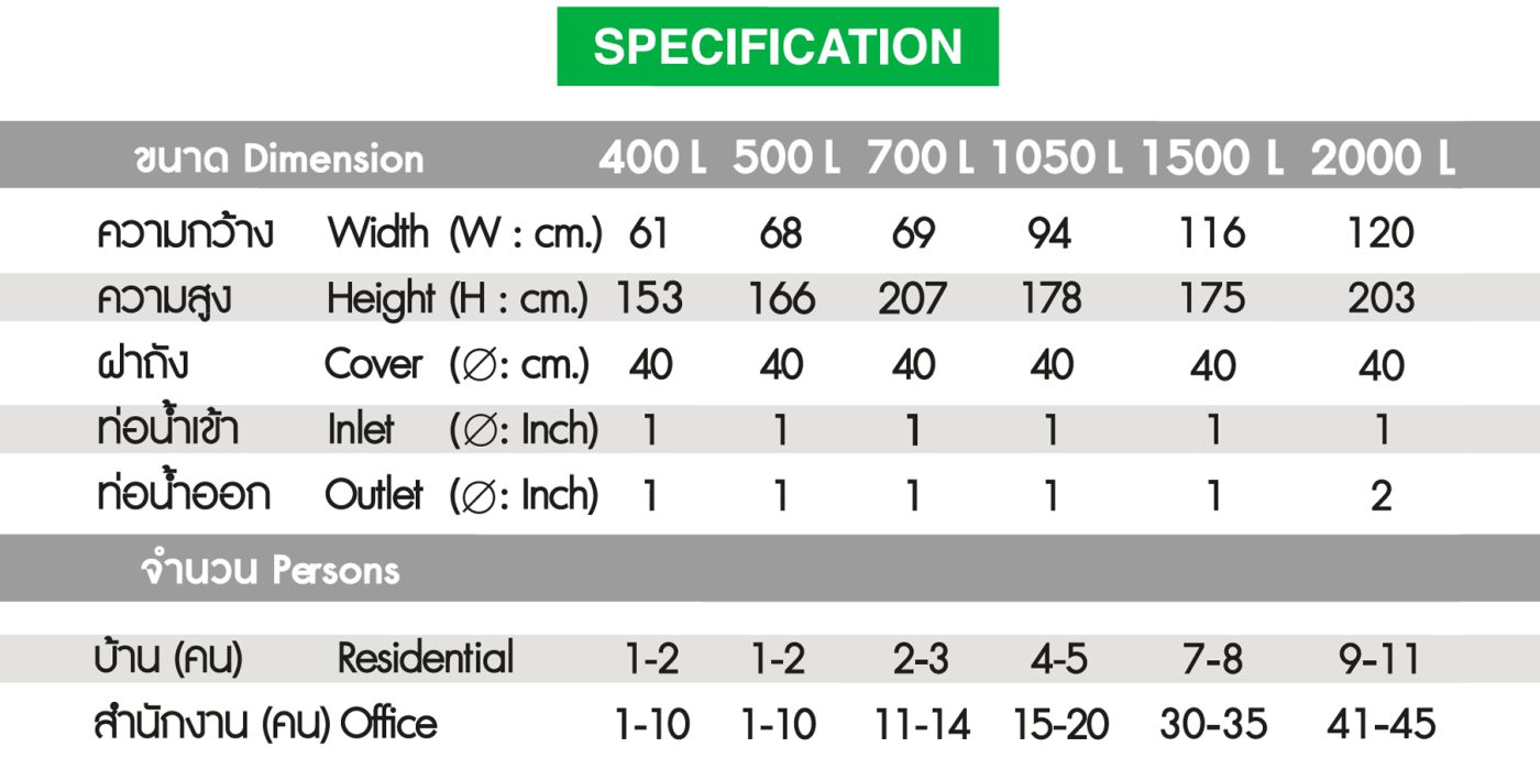 2. รุ่น (ลิตร) 400L , 500L , 700L , 1050L , 1500L , 2000L