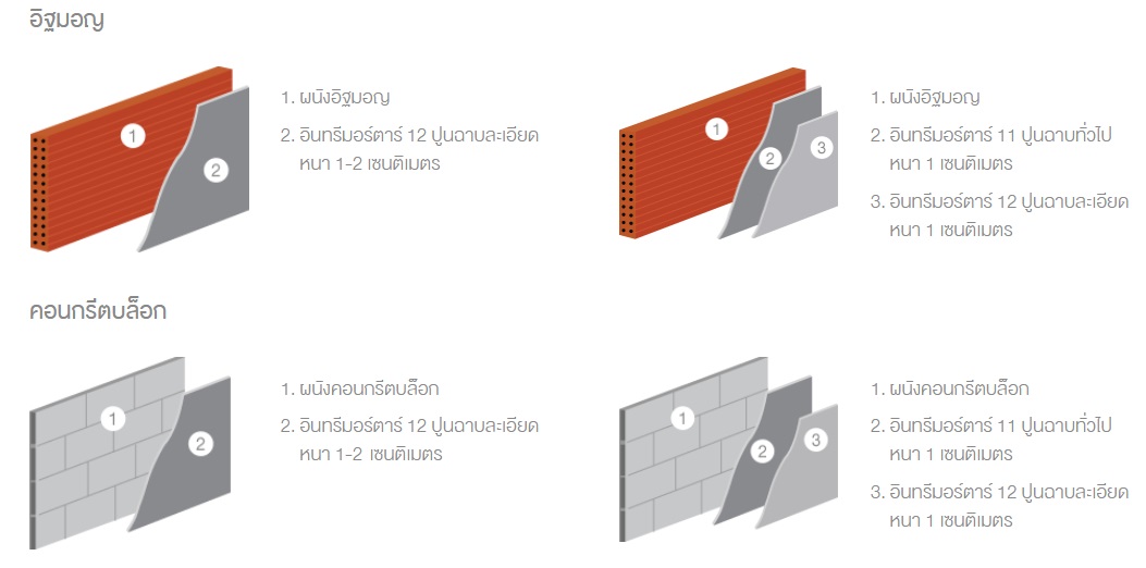 ออกแบบเฉพาะสำหรับงานฉาบผนังที่ก่อด้วยอิฐมอญและคอนกรีตบล็อก สามารถฉาบผนังได้ทั้งภายใน และภายนอกอาคารที่เน้นความเรียบเนียนเป็นพิเศษ